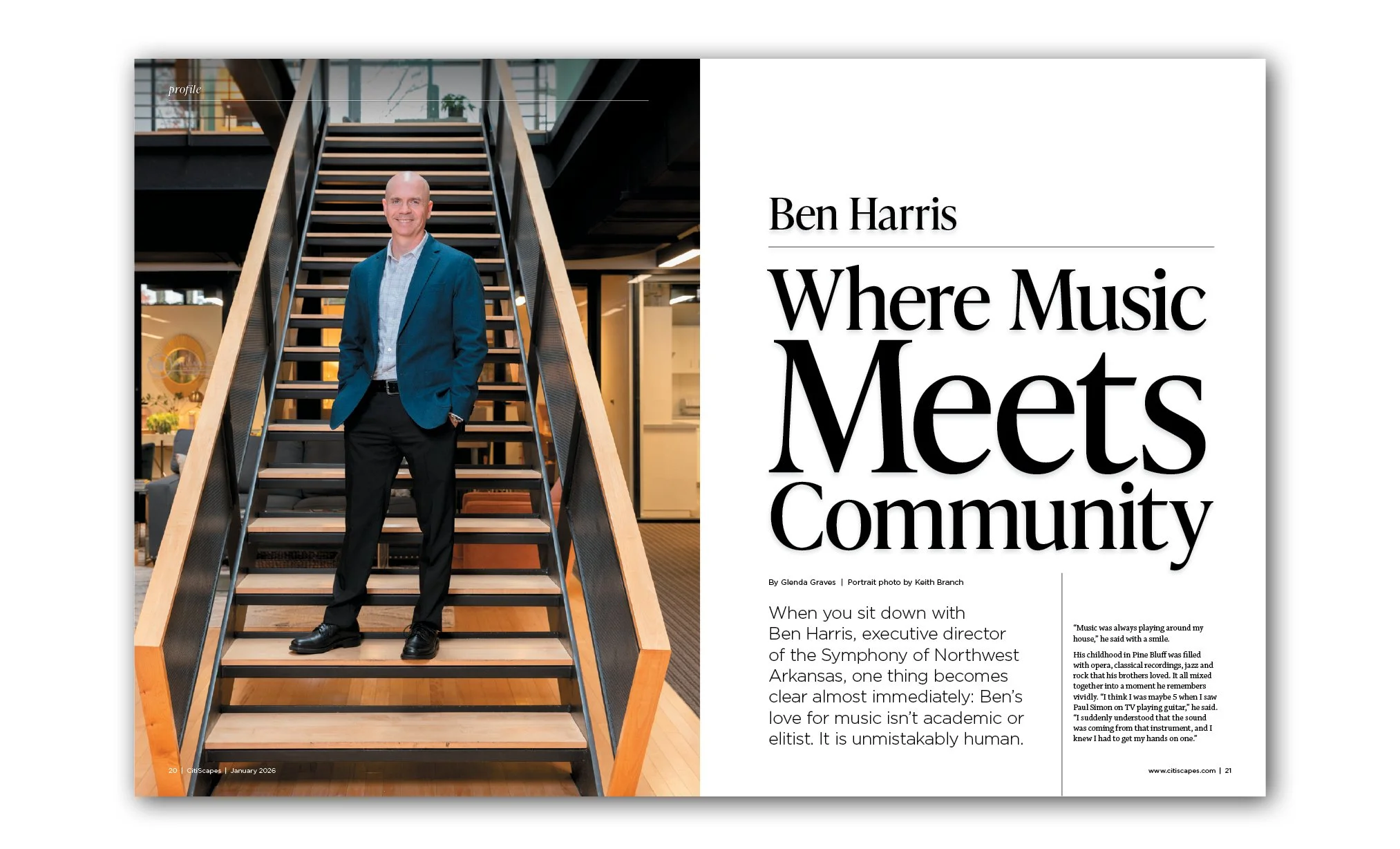 Congratulations to SoNA Executive Director Ben Harris, who was recently profiled in the January issue of CitiScapes Magazine. As writer Glenda Graves notes, "When you sit down with [him], one thing becomes clear almost immediately: Ben’s love for music isn’t academic or elitist. It is unmistakably human."